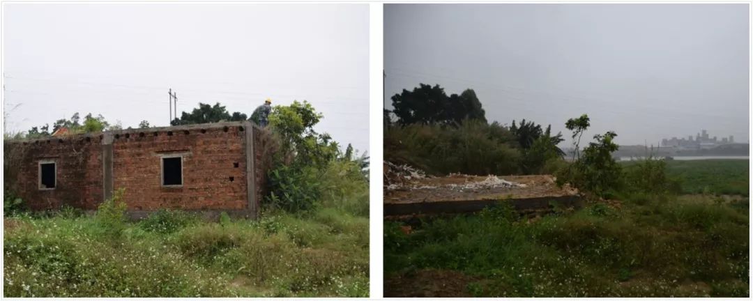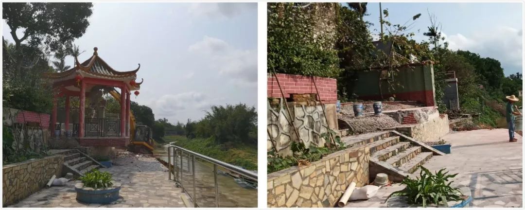 東成鎮(zhèn)水閘上游右岸邊違建涼亭整治前后