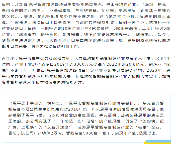 推進(jìn)智能裝備制造產(chǎn)業(yè)發(fā)展有重要意義。”恩平市智能裝備制造行業(yè)協(xié)會(huì)秘書(shū)長(zhǎng)、廣東艾普升智能裝備有限