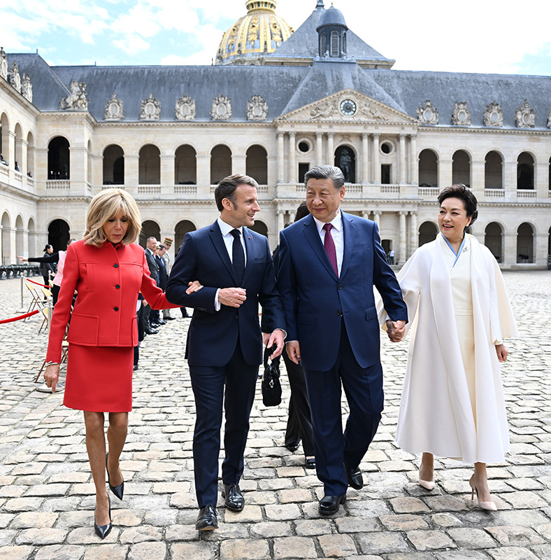 五月的巴黎,風(fēng)和景明。塞納河畔,榮軍院金色穹頂熠熠生輝,五星紅旗和藍(lán)白紅三色旗迎風(fēng)飄揚(yáng)。