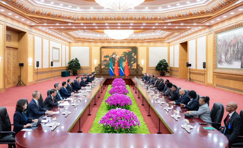 習(xí)近平指出,中國同南非的友好源于爭取民族解放的肝膽相照、推進(jìn)國家發(fā)展建設(shè)的相扶相伴、追求國際公平正義的團(tuán)結(jié)協(xié)作。今年是中華人民共和國成立75周年,也是新南非成立30周年。盡管國際形勢風(fēng)云變幻,中南兩國追求現(xiàn)代化的使命沒有變,推動中非合作的志向沒有變,完善全球治理的愿望沒有變。中南加強團(tuán)結(jié)合作,符合兩國人民共同期待,契合全球南方發(fā)展壯大的歷史進(jìn)程,具有重要的時代意義和世界影響。