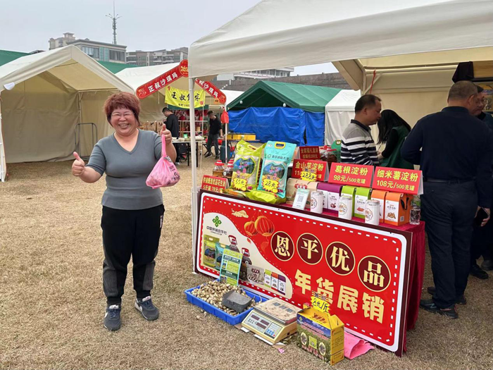活動(dòng)現(xiàn)場(chǎng)人潮涌動(dòng),不少群眾前來選購年花年貨,喜迎新春佳節(jié)。走進(jìn)供銷年貨優(yōu)選展位,金山芋粉、葛根粉、細(xì)米薯粉、恩平大米、花生油、本地茨菇等供銷優(yōu)選產(chǎn)品引人注目。群眾駐足展位前,嘗薯粉、問價(jià)格、備年貨、迎新春,現(xiàn)場(chǎng)熱鬧非凡,年味十足。
