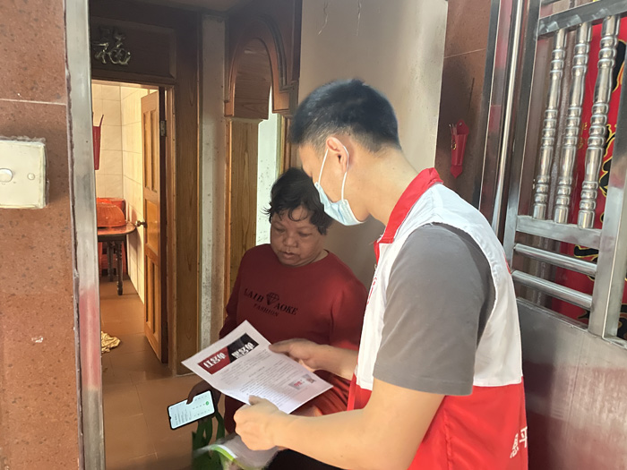 (志愿者在進(jìn)行誠(chéng)信建設(shè)入戶宣傳工作)