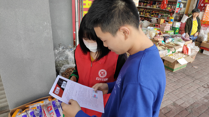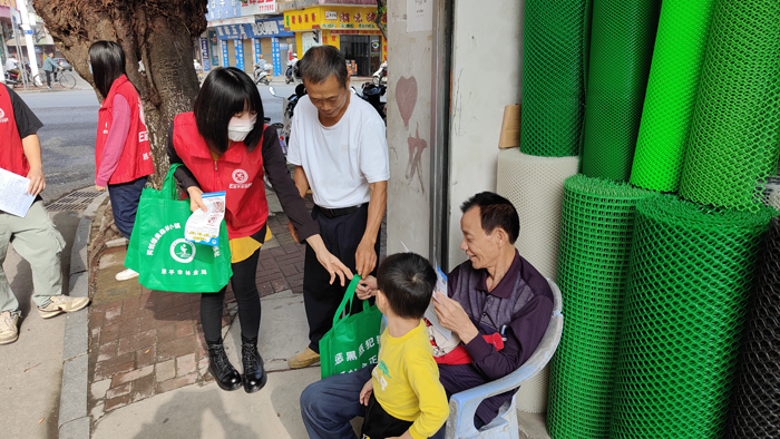 (工作人員進店入戶派發(fā)宣傳資料)