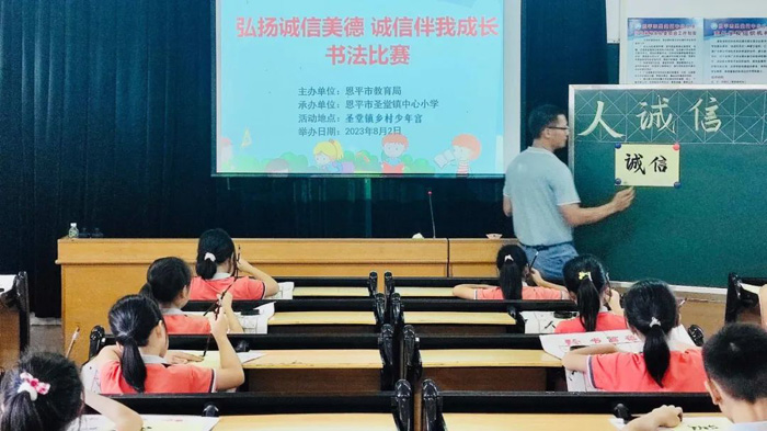 為了加深同學們對誠信的理解,將誠信的內(nèi)涵深化于言行當中,圣堂鎮(zhèn)鄉(xiāng)村學校少年宮組織學員代表參加“弘揚誠信美德 誠信伴我成長”誠信教育書法比賽。