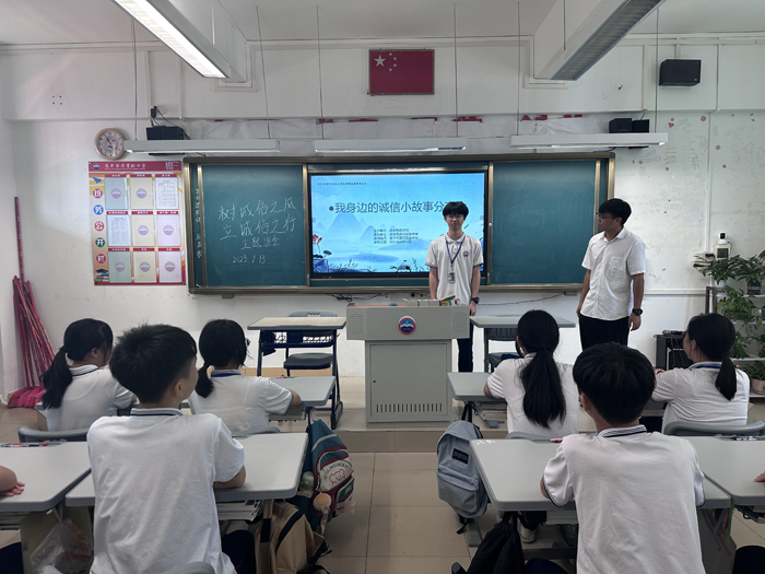 當天,各班班主任通過開展“樹誠信之風,立誠信之行”主題班會及“我身邊的誠信小故事——故事分享會”等多種形式培育同學們的誠信意識。同學們通過講誠信小故事,誦讀誠信名言警句等方式來表達對誠信的理解,讓誠信叩響孩子向善向美的心扉。