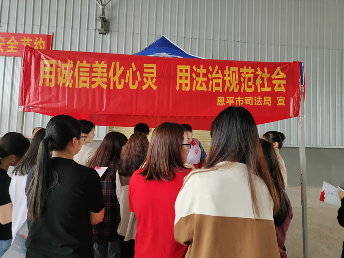 為深入加強(qiáng)企業(yè)誠(chéng)信體系建設(shè),共同營(yíng)造誠(chéng)實(shí)守信的信用環(huán)境,4月3日,恩平市司法局到恩平市盈彩包裝科技有限公司開展“用誠(chéng)信美化心靈 用法治規(guī)范社會(huì)”宣傳活動(dòng)。企業(yè)管理層及職工共80多人參加.
