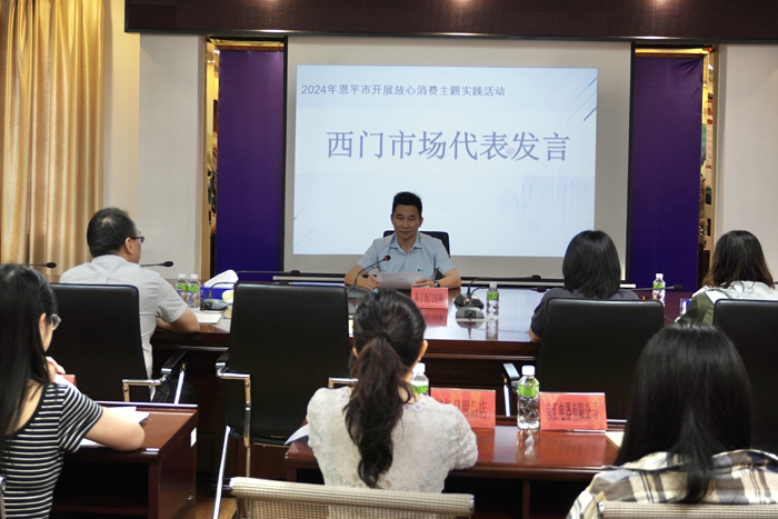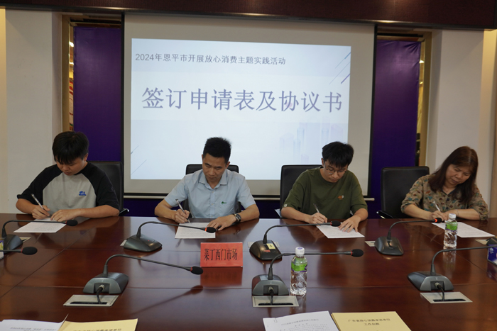 為進(jìn)一步推進(jìn)放心消費(fèi)創(chuàng)建工作,大力發(fā)展恩平市放心消費(fèi)“雙承諾單位”,營造安全放心消費(fèi)環(huán)境,4月23日下午,市市場監(jiān)督管理局與市消費(fèi)者權(quán)益保護(hù)委員會(huì)聯(lián)合開展放心消費(fèi)主題實(shí)踐活動(dòng)——“我經(jīng)營 我承諾 公平消費(fèi)你放心”放心消費(fèi)“雙承諾”宣誓活動(dòng)。菜丁西門市場代表、部分放心消費(fèi)“雙承諾單位”現(xiàn)場參加。