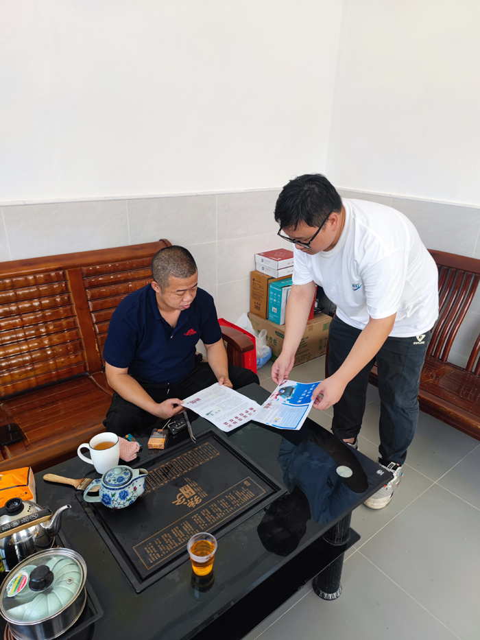 (工作人員向企業(yè)負(fù)責(zé)人講解宣傳資料)