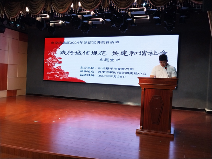 為進(jìn)一步推進(jìn)我市社會(huì)信用體系建設(shè),營(yíng)造誠(chéng)實(shí)守信社會(huì)氛圍,6月26日上午,市委統(tǒng)戰(zhàn)部(民宗局)在恩平市新時(shí)代文明實(shí)踐中心開展“踐行誠(chéng)信規(guī)范 共建和諧社會(huì)”主題宣講活動(dòng)。市委統(tǒng)戰(zhàn)部干部職工、宗教界代表及信教群眾參加活動(dòng)。