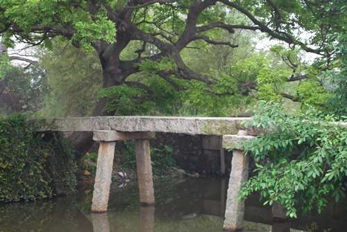 平塘村三駁橋興建于中華民國時期,東北至西南走向,橋全長12.79米,每駁長4.26米,橋面寬1.1米,高3米,共三駁,三駁橋跨越陽橋水,由花崗巖組成,每駁有三條花崗巖并排構(gòu)成,石板長4.26米,寬0.35米,厚0.32米。橋架共4個,基本呈等距離分布,中間兩個,兩端各一個。橋架以兩根石柱略呈八字形支撐上部石橫梁承托橋面石條。石柱與石橫梁之間以榫卯結(jié)構(gòu)套合。三駁橋是平塘村和平三村的連接之地,方便了村民彼此間的往來。此橋是恩平目前保存尚好,為數(shù)極少的石橋之一。對研究恩平石橋建造藝術(shù)有一定參考價值。2012年1月恩平市人民政府公布為文物保護單位。