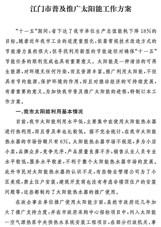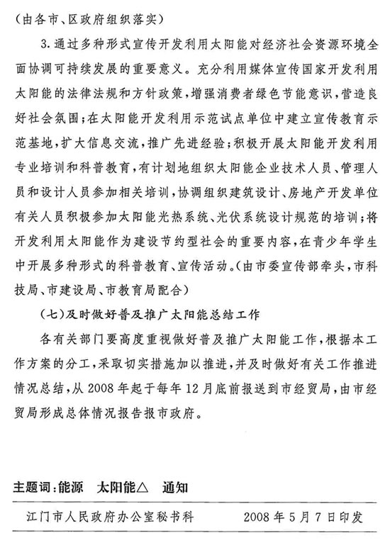 轉(zhuǎn)發(fā)江門市普及推廣太陽能工作方案的通知