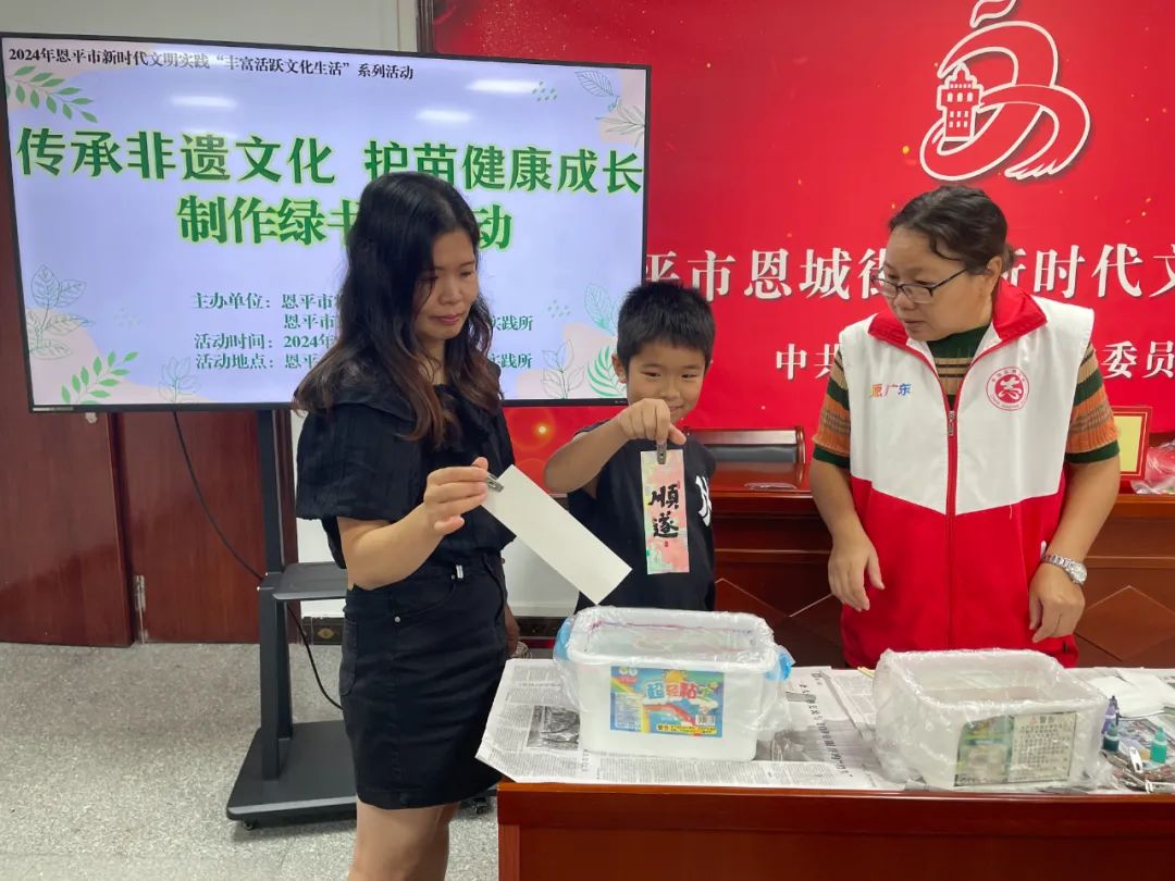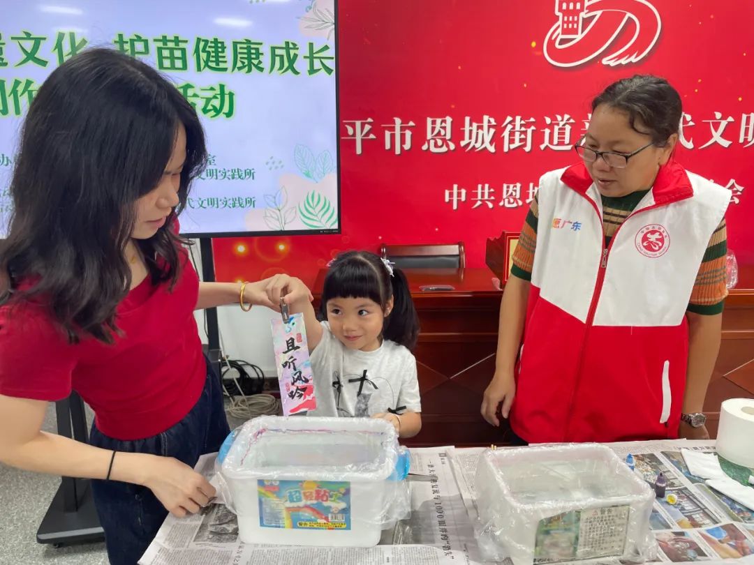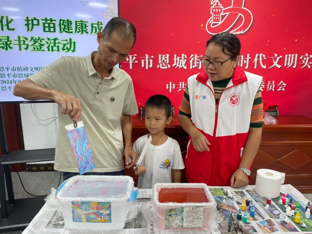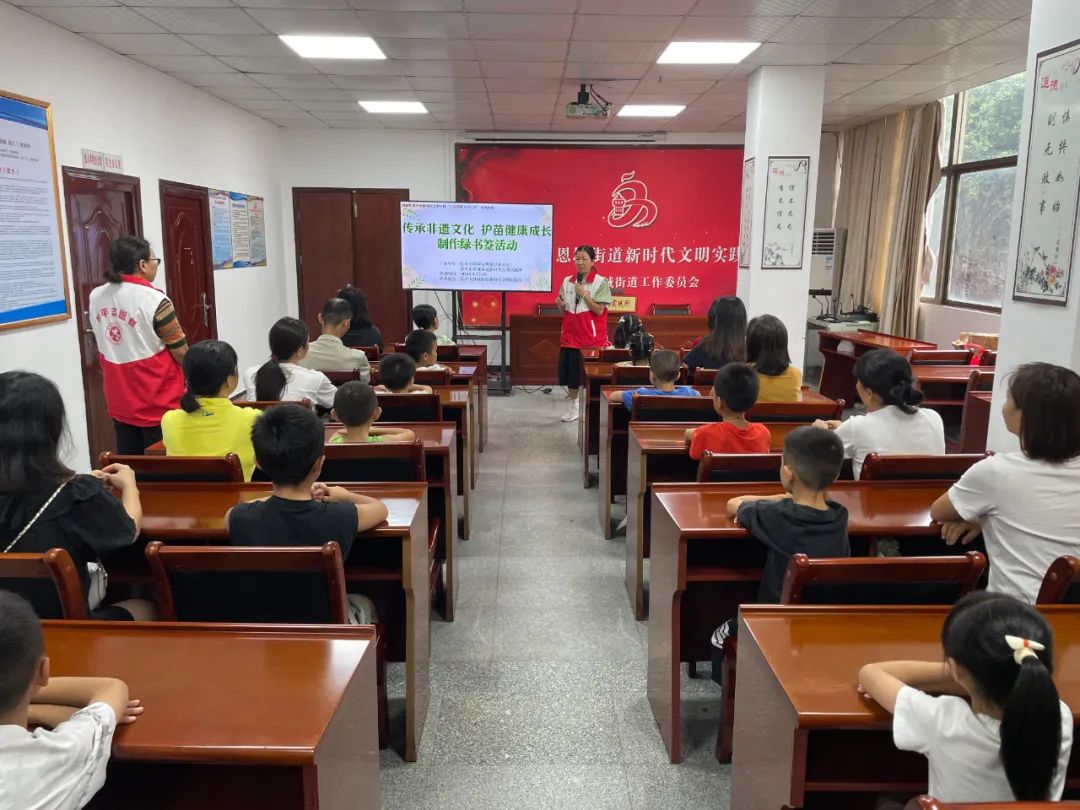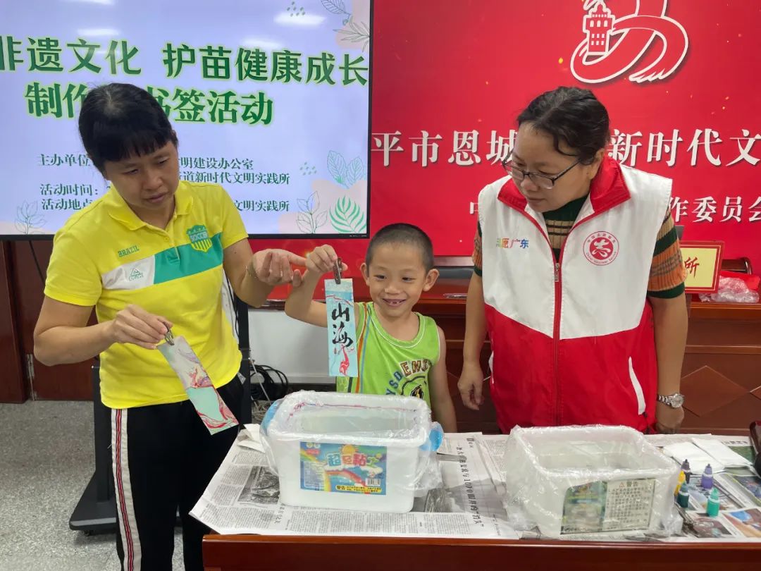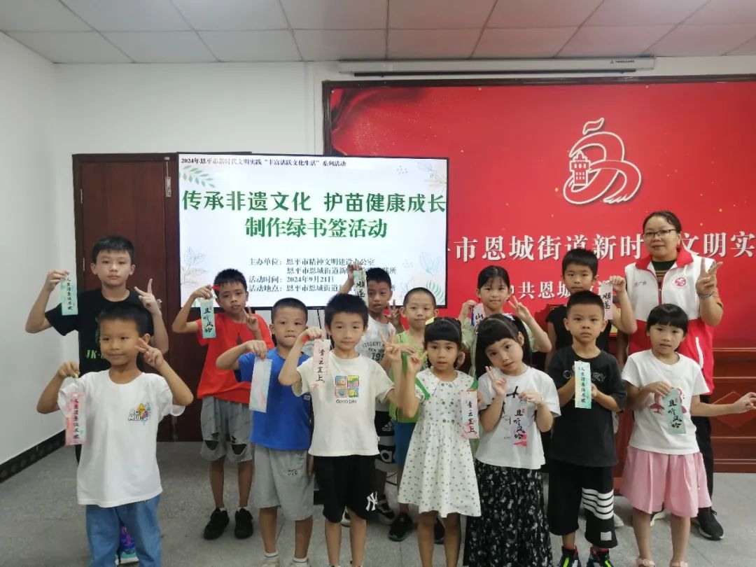 恩城街道新時代文明實踐所開展“傳承非遺文化,護苗健康成長”制作綠書簽活動