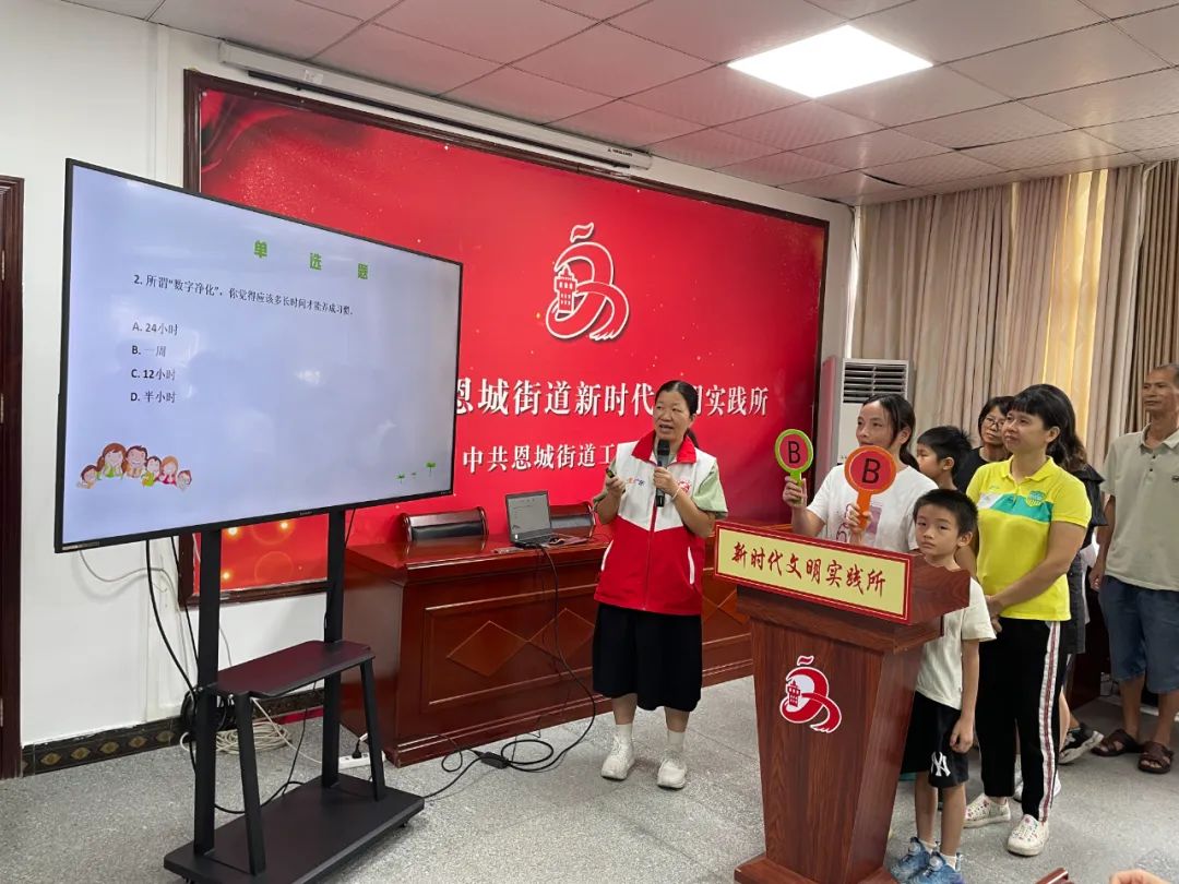 通過播放視頻、PPT展示等多種形式,志愿者用簡潔易懂的語言給孩子們講解“掃黃打非”知識和“綠書簽心動”理念,組織大家觀看護苗行動視頻,向親子們強調綠色閱讀和文明上網的重要性,引導孩子們自覺抵制負面網絡信息,注重身心健康,不沉迷網絡游戲和短視頻軟件,構筑起保護青少年健康成長的堅固屏障。
