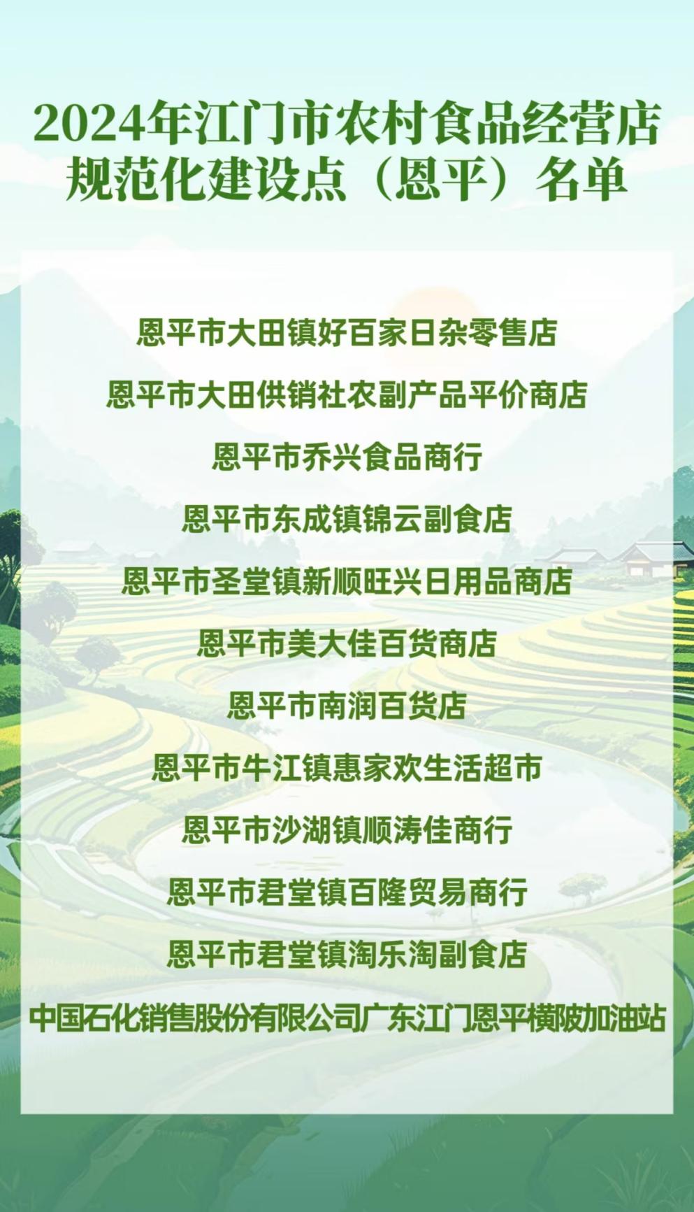 2024年江門市農(nóng)村食品經(jīng)營(yíng)店規(guī)范化建設(shè)點(diǎn)(恩平)名單公布!