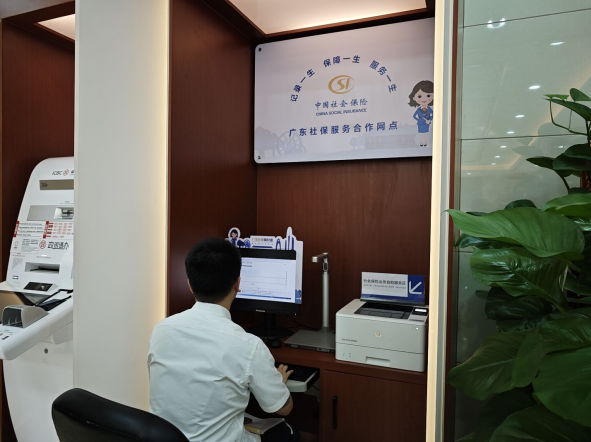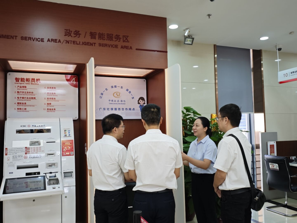活動(dòng)現(xiàn)場(chǎng),工商銀行恩平支行工作人員介紹了該服務(wù)點(diǎn)社保服務(wù)經(jīng)辦建設(shè)情況,并對(duì)可向群眾提供的社保服務(wù)事項(xiàng)、辦理流程進(jìn)行演示講解。服務(wù)點(diǎn)分設(shè)自助服務(wù)區(qū)、網(wǎng)辦專區(qū),配備“政銀通辦”自助終端、計(jì)算機(jī)、高拍儀和打印機(jī)等設(shè)備,為市民提供社保繳費(fèi)明細(xì)查詢、社保信息查詢、保險(xiǎn)關(guān)系轉(zhuǎn)移、待遇資格認(rèn)證、申領(lǐng)第三代社??ǖ?6項(xiàng)社保服務(wù)。如市民在網(wǎng)點(diǎn)辦理業(yè)務(wù)時(shí)遇到難題,銀行工作人員還貼心提供“線上導(dǎo)辦”服務(wù),“一對(duì)一”指導(dǎo)市民通過“粵省事”、“廣東人社”APP、電子社??ǖ确?wù)平臺(tái)辦理社保業(yè)務(wù)。此外,服務(wù)點(diǎn)內(nèi)還擺放社保業(yè)務(wù)宣傳資料,提供最新社保辦事指引,以多樣化社保服務(wù)滿足群眾個(gè)性化需求,打通服務(wù)群眾“最后一公里”。