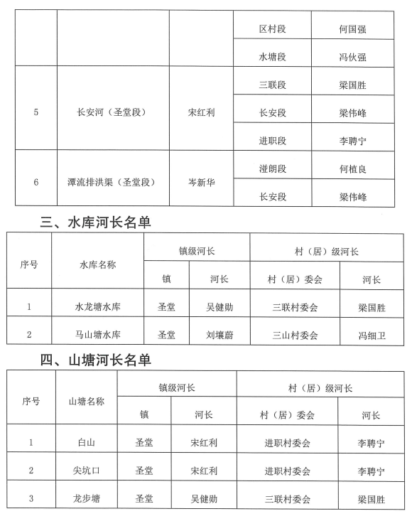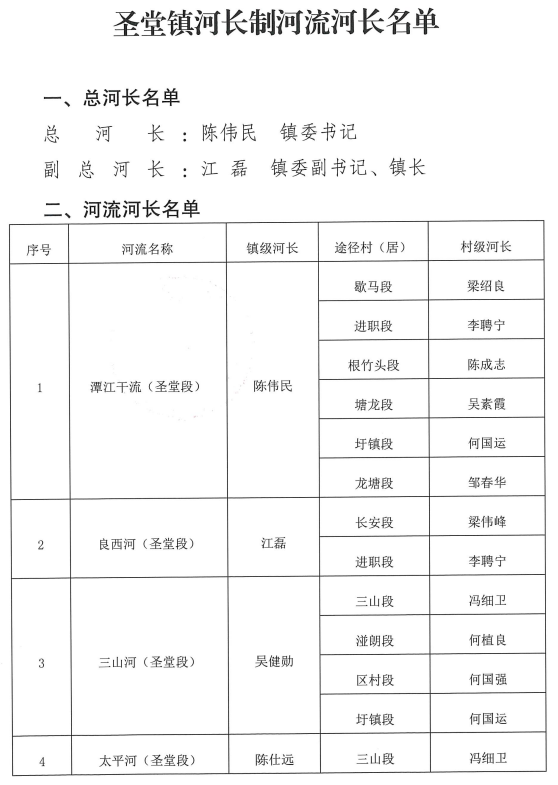 關(guān)于調(diào)整圣堂鎮(zhèn)河長(zhǎng)制河流河長(zhǎng)名單的通知