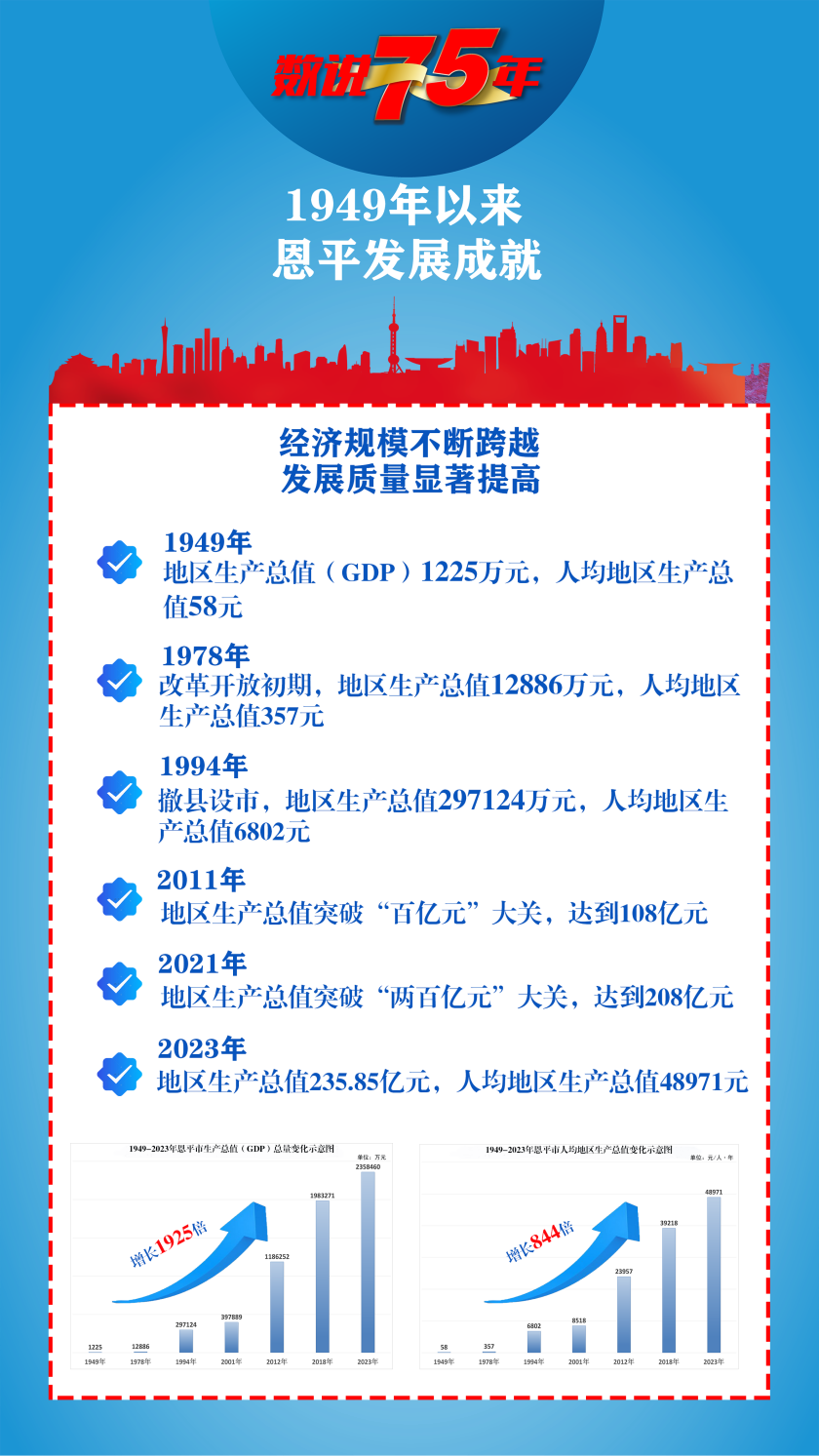 一代又一代的恩平人在幅員遼闊的恩州大地上乘風(fēng)破浪,奮勇向前,建設(shè)了安居樂業(yè)的美好家園。20世紀(jì)90年代初,恩平已成為全國(guó)百強(qiáng)縣之一,經(jīng)濟(jì)、人口等各項(xiàng)指標(biāo)都達(dá)到了撤縣設(shè)市條件。在各級(jí)領(lǐng)導(dǎo)、海內(nèi)外鄉(xiāng)親的積極推動(dòng)下,恩平縣積極向上級(jí)申報(bào),1994年2月28日國(guó)務(wù)院批準(zhǔn)恩平撤縣設(shè)市。設(shè)市30年來,在黨的正確領(lǐng)導(dǎo)下,海內(nèi)外恩平人民銳意進(jìn)取,開拓創(chuàng)新,實(shí)現(xiàn)了經(jīng)濟(jì)、文化、民生等社會(huì)面貌的歷史性飛躍。