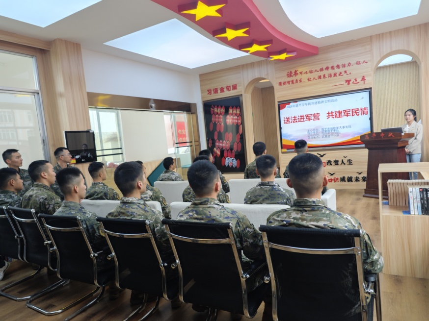(二)多方協(xié)力,引領(lǐng)良好學法風尚。依托“每月一活動”平臺,積極邀請軍隊干部、老戰(zhàn)士、專家到各機關(guān)、社區(qū)、中小學開展普法宣講課10余場次,受眾達3千余人次,有力引領(lǐng)干部職工、社會群眾、在校學生等群體學法普法、用法守法。在全社會形成尊崇法律,學習法律的良好風尚。