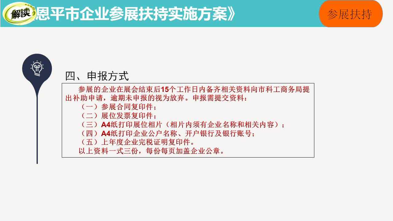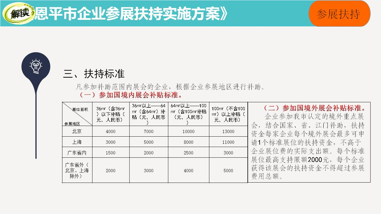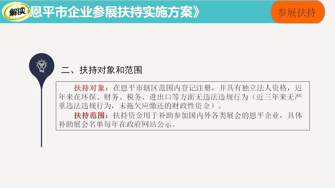 解讀文本:《恩平市企業(yè)參展扶持實施方案》
