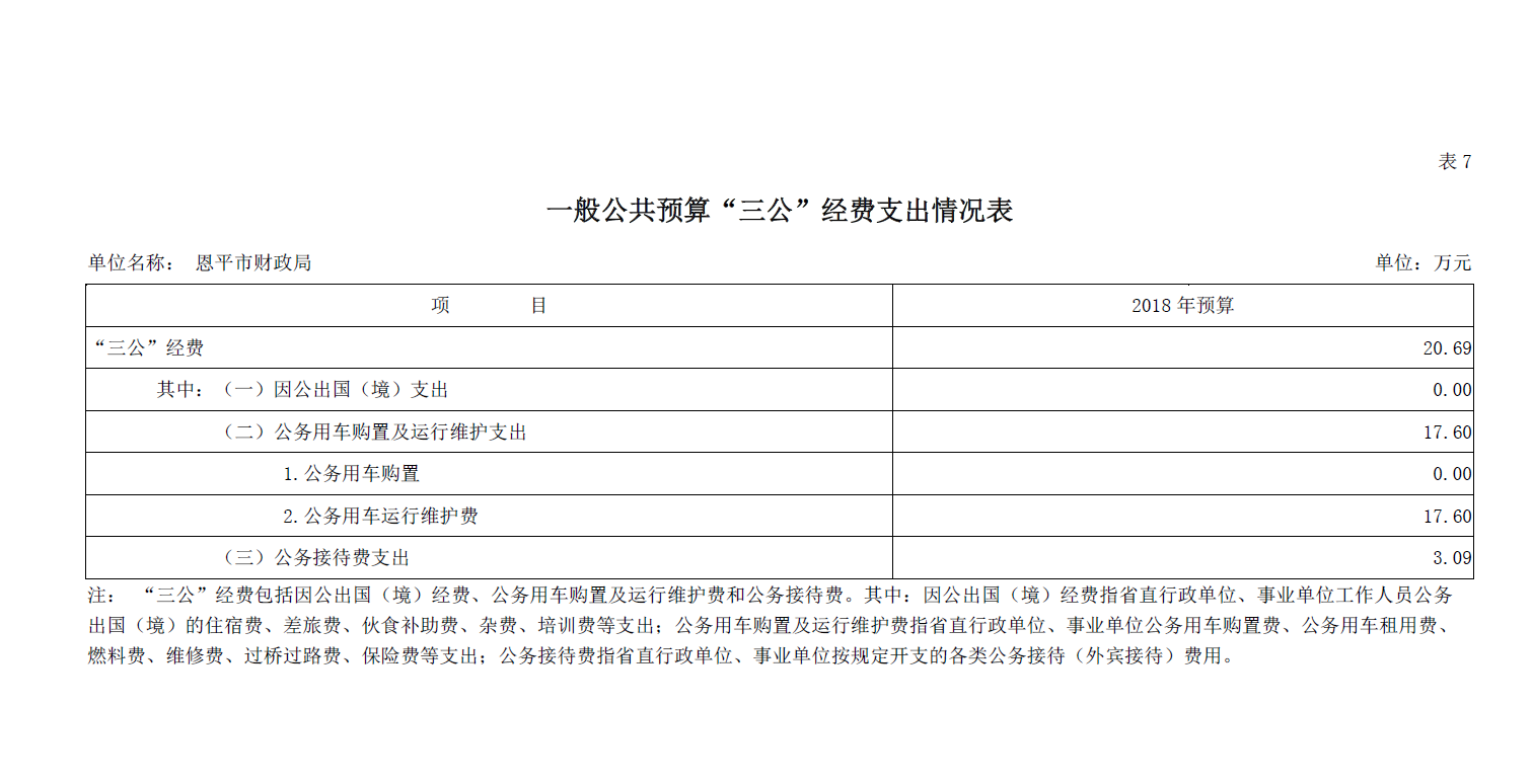恩平市財(cái)政局2018年度“三公”經(jīng)費(fèi)預(yù)算公開
