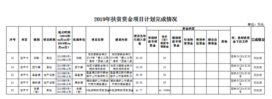 2019年扶貧資金項(xiàng)目計(jì)劃完成情況的公示