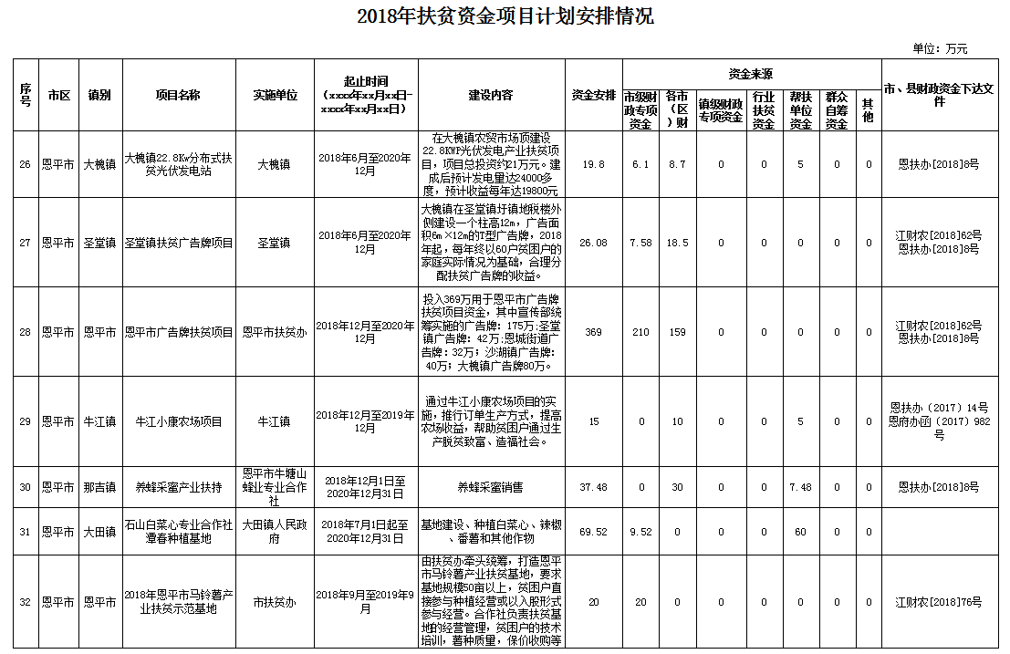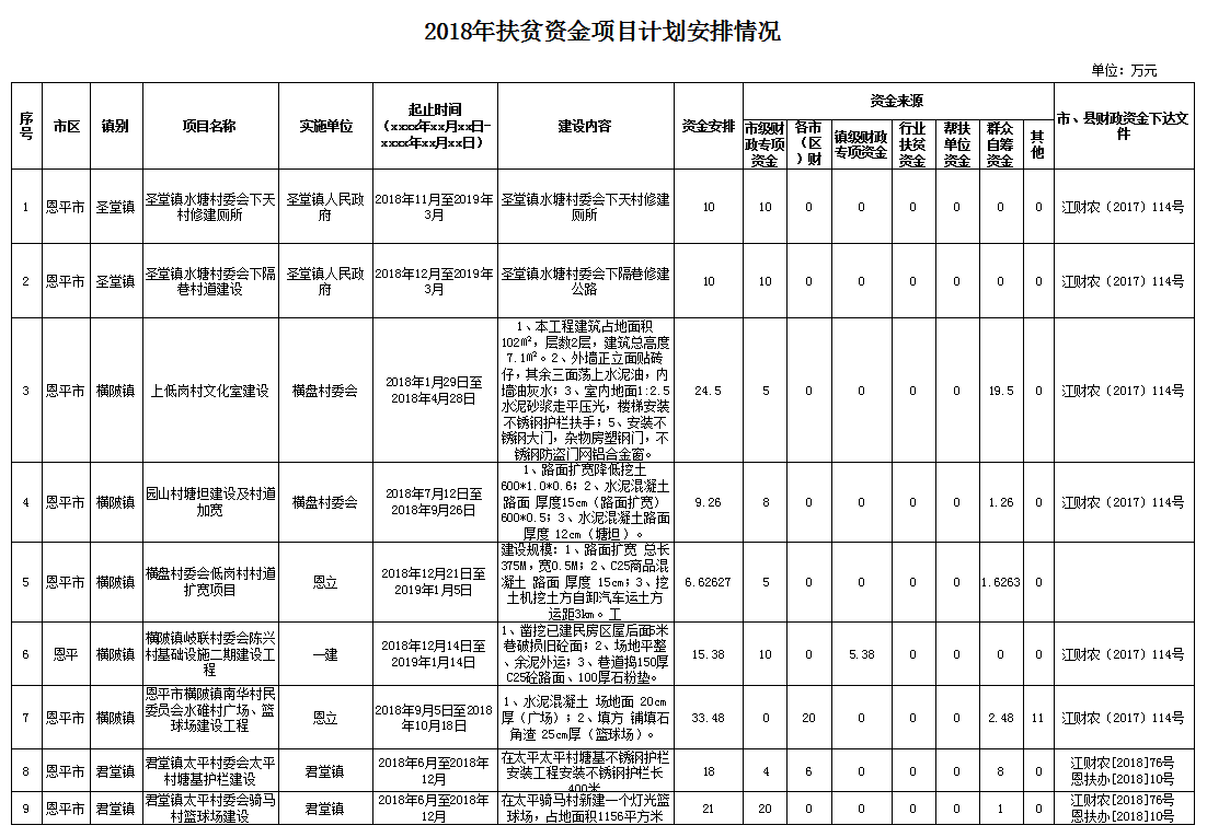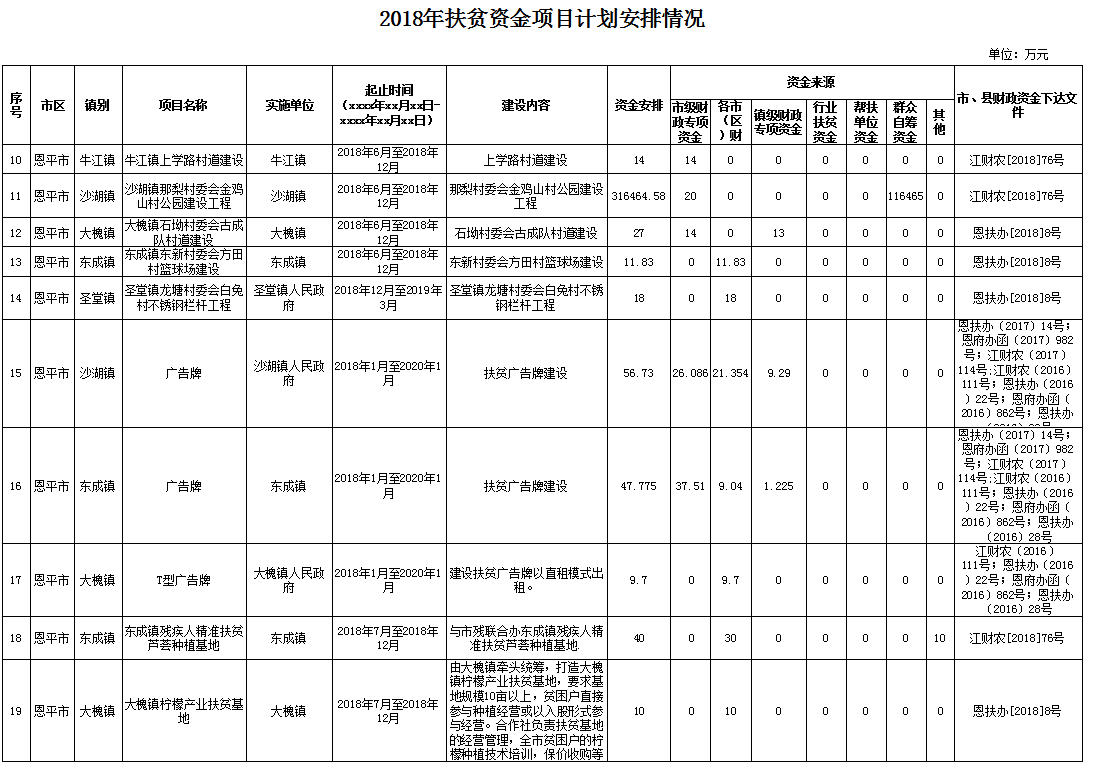 2018年扶貧資金項目計劃安排情況的公示