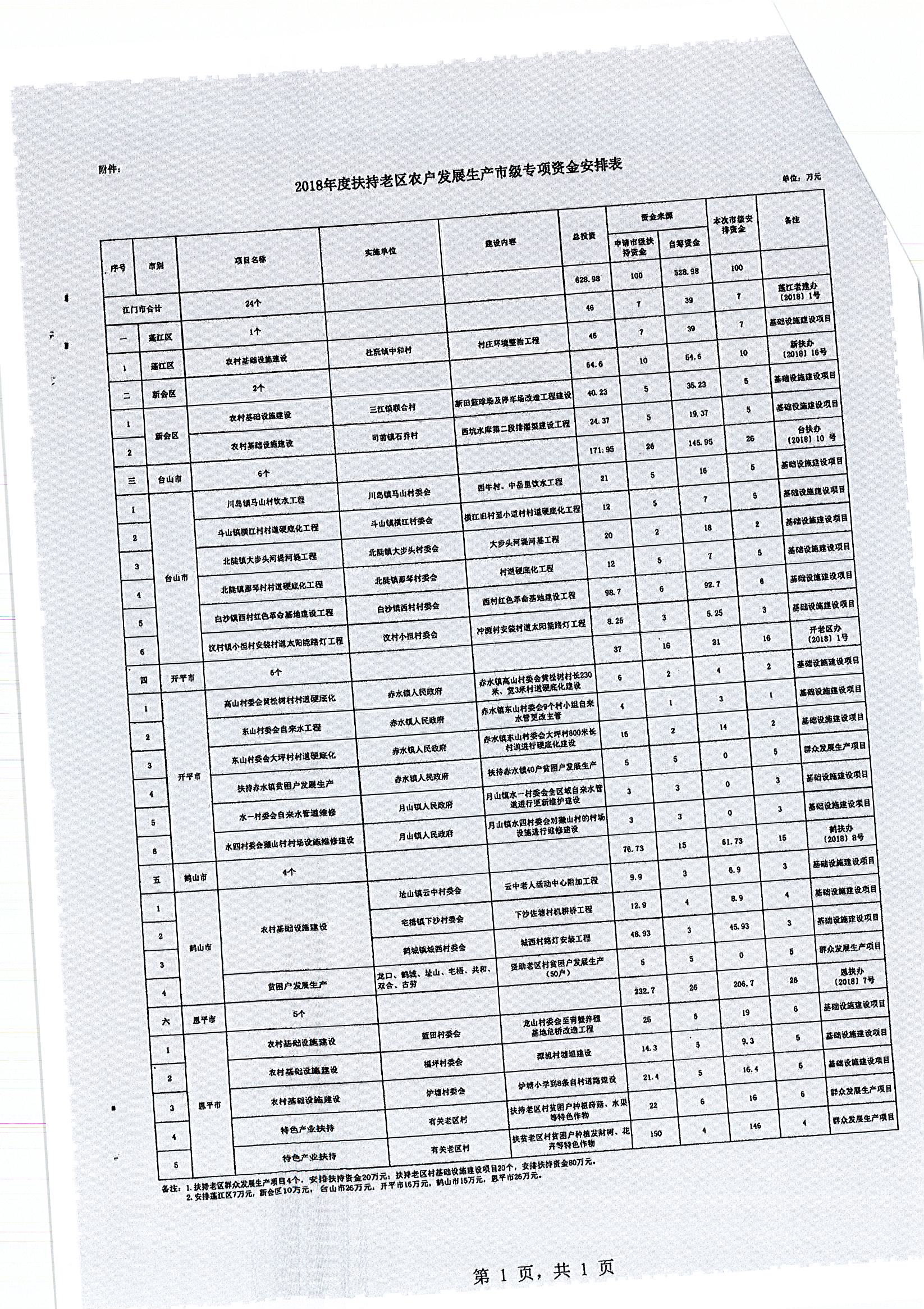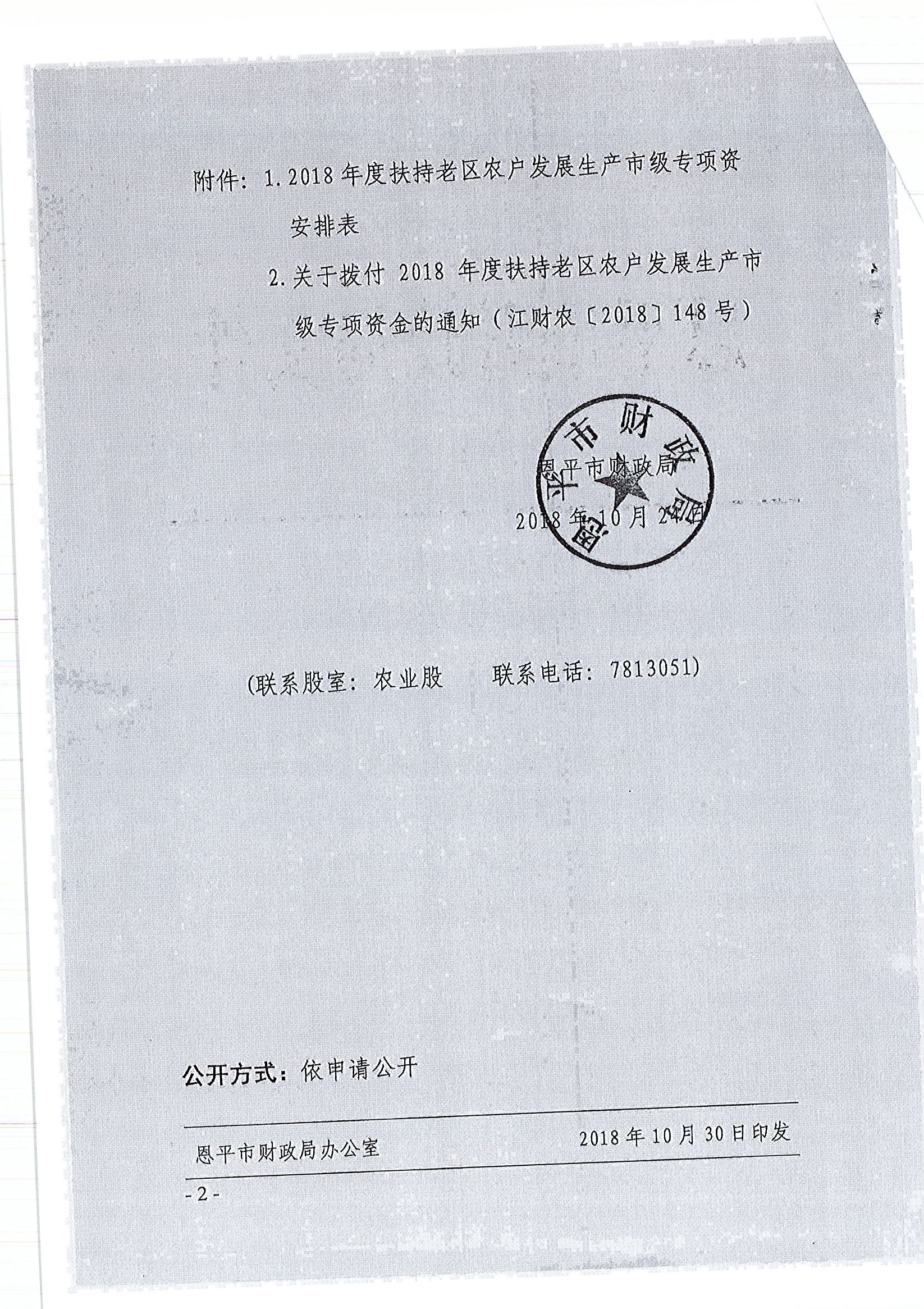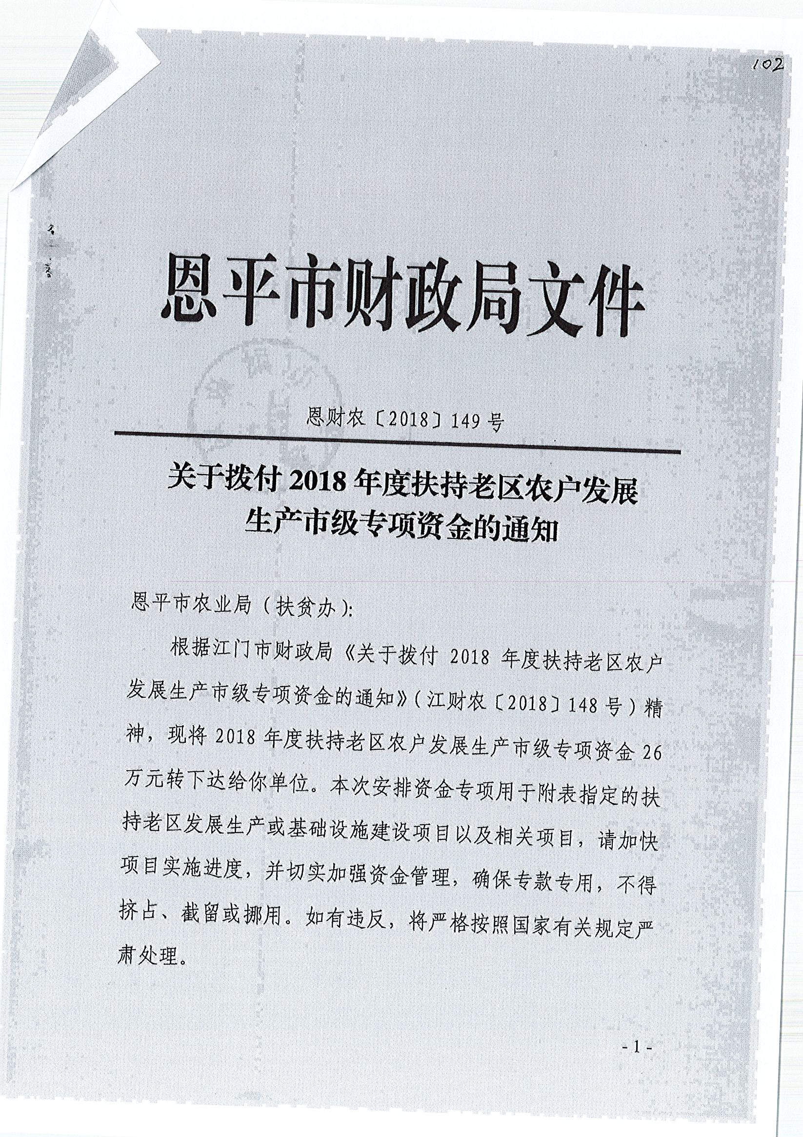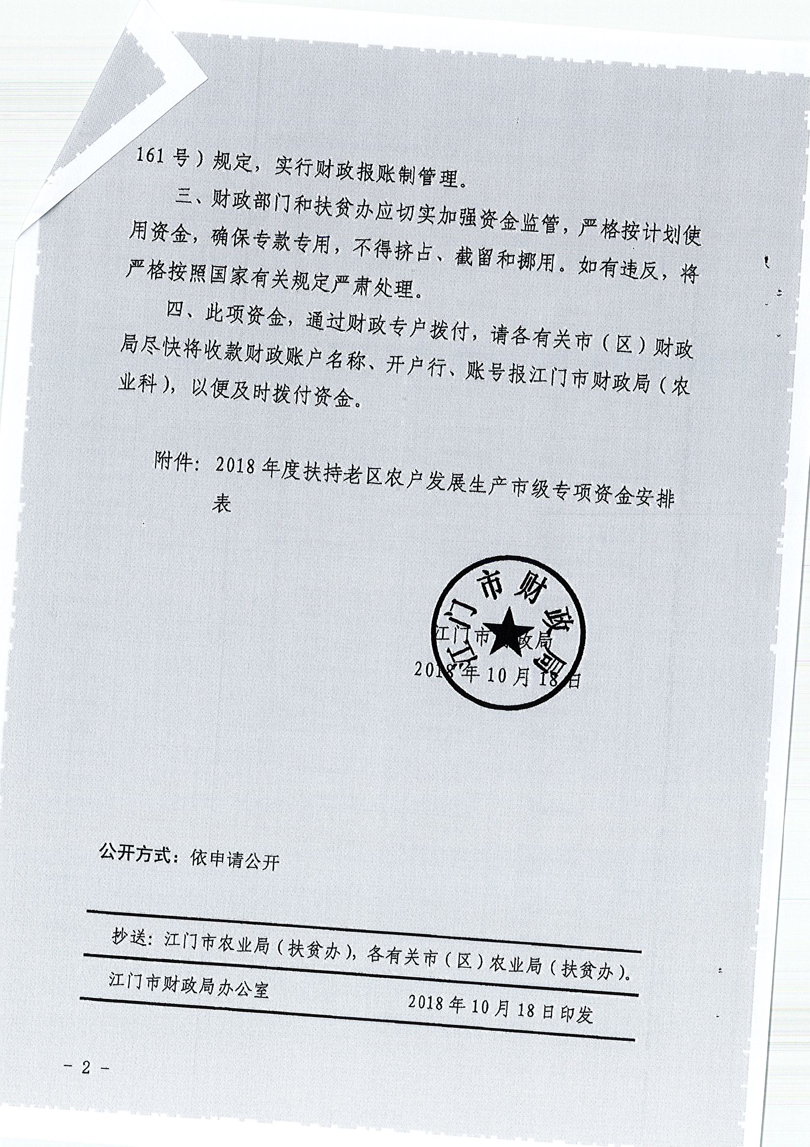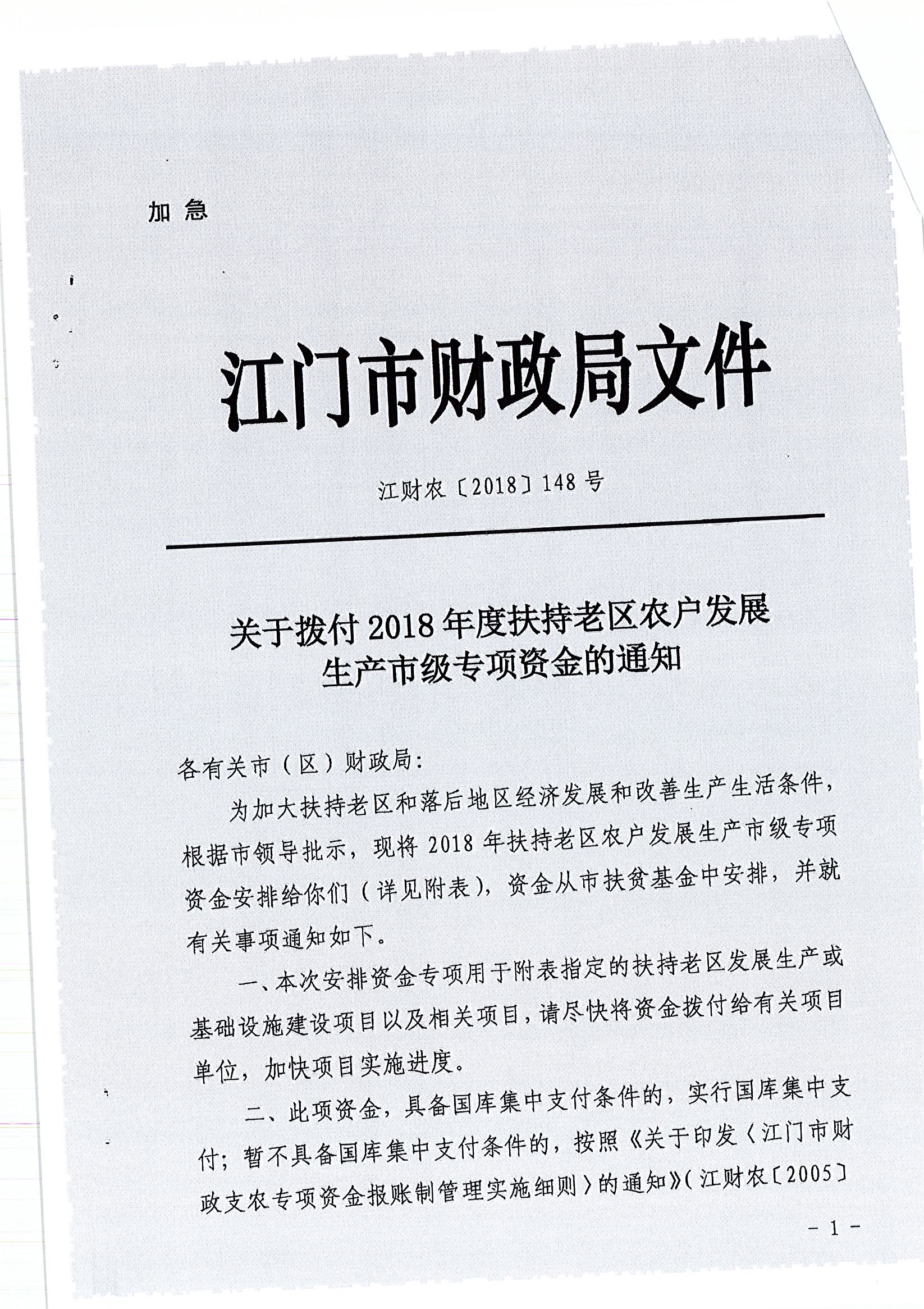 關(guān)于撥付2018年度扶持老區(qū)農(nóng)戶發(fā)展生產(chǎn)市級專項資金的通知