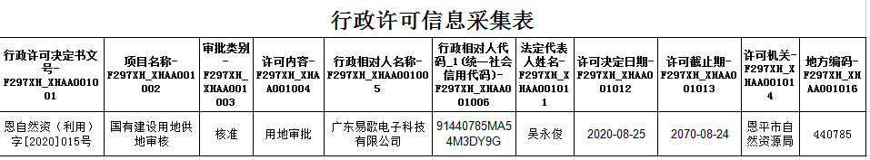 行政許可信息(2020年8月25日)