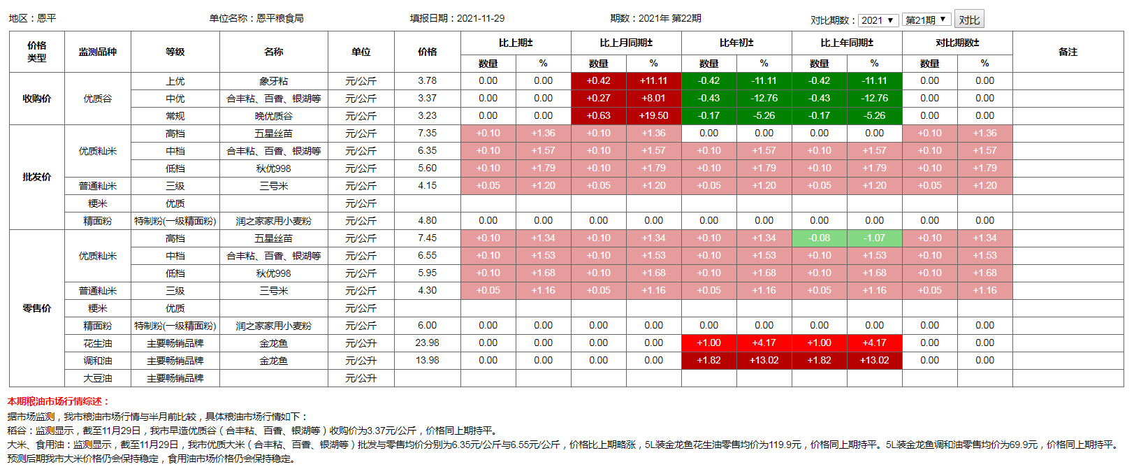 糧油價(jià)格監(jiān)測(2021年11月29日)