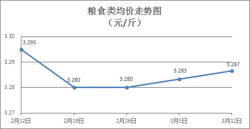 糧食類商品價格穩(wěn)中微漲。本周所監(jiān)測的6種糧食商品價格波動情況為2漲4平,綜合零售均價為3.287元/斤,環(huán)比上漲0.10%。其中:晚秈米、絲苗米、標(biāo)準(zhǔn)粉零售均價分別為每斤3.26元、3.44元、3.14元,環(huán)比分別持平、上漲0.29%、上漲0.32%。