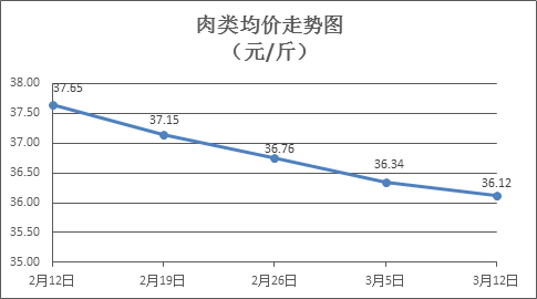 肉類商品價格繼續(xù)下跌。本周所監(jiān)測的8種肉類商品價格7跌1平,綜合零售均價為36.12元/斤,環(huán)比下降0.61%。其中:排骨、精瘦肉、有皮上肉、牛肉零售均價分別為每斤31.65元、20.98元、16.40元、54.21元,環(huán)比分別下降1.19%、下降1.69%、下降3.02%、持平。