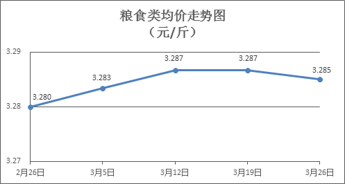 糧食類商品價(jià)格基本平穩(wěn)。本周所監(jiān)測(cè)的6種糧食商品價(jià)格波動(dòng)情況為1跌5平,綜合零售均價(jià)為3.285元/斤,環(huán)比下降0.05%。其中:晚秈米、絲苗米、標(biāo)準(zhǔn)粉零售均價(jià)分別為每斤3.26元、3.43元、3.14元,環(huán)比分別持平、下降0.29%、持平。