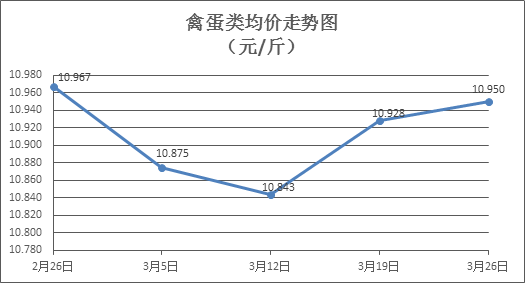 禽蛋類商品價(jià)格總體略升。本周所監(jiān)測(cè)的6種禽蛋類商品價(jià)格波動(dòng)情況為4漲2跌,綜合零售均價(jià)為10.950元/斤,環(huán)比上漲0.20%。其中:白條雞、白條鴨零售均價(jià)分別為每斤19.74元、15.37元,環(huán)比分別上漲0.10%、上漲0.65%;白殼雞蛋、鴨蛋零售均價(jià)分別為每斤6.91元、7.85元,環(huán)比分別下降0.29%、上漲0.13%。