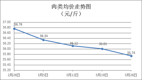豬肉類商品價(jià)格延續(xù)降勢(shì)。本周所監(jiān)測(cè)的8種肉類商品價(jià)格2漲6跌,綜合零售均價(jià)為35.74元/斤,環(huán)比下降0.75%。其中:排骨、精瘦肉、有皮上肉、牛肉零售均價(jià)分別為每斤30.82元、20.34元、15.80元、54.88元,環(huán)比分別下降1.25%、下降1.36%、下降1.80%、上漲0.16%。