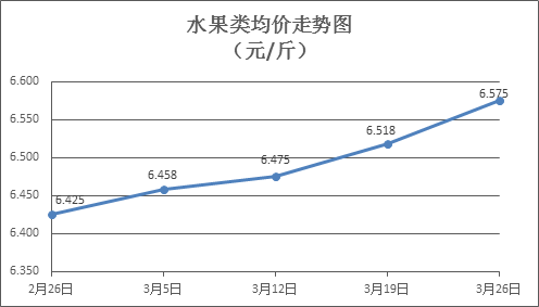 水果類商品價(jià)格升降互現(xiàn)。本周所監(jiān)測(cè)的6種水果商品價(jià)格波動(dòng)情況為3漲3跌,綜合零售均價(jià)為6.575元/斤,環(huán)比上漲0.87%。其中蘋果、香蕉、葡萄零售均價(jià)分別為每斤7.13元、3.16元、13.00元,環(huán)比分別下降0.28%、上漲0.64%、上漲1.40%。