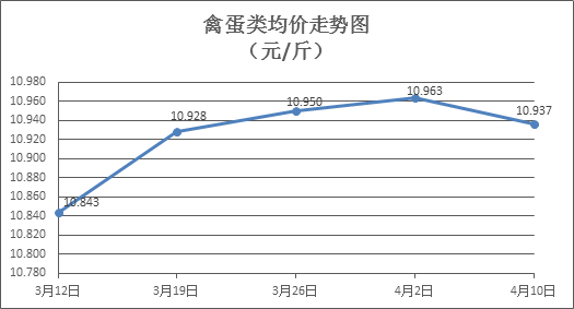 禽蛋類商品價格窄幅盤整。本周所監(jiān)測的6種禽蛋類商品價格波動情況為2漲3跌1平,綜合零售均價為10.937元/斤,環(huán)比下降0.24%。其中:白條雞、白條鴨零售均價分別為每斤19.88元、15.21元,環(huán)比分別上漲0.56%、下降1.11%;白殼雞蛋、鴨蛋零售均價分別為每斤6.94元、7.82元,環(huán)比分別下降0.72%、持平。