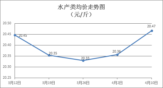 據(jù)本市21家農(nóng)貿(mào)市場監(jiān)測數(shù)據(jù)顯示,上周4月2日至4月9日(下同)市場上各類“菜籃子”商品供應充足,所監(jiān)測的7大類“菜籃子”商品價格4漲2跌1平。其中:糧食類商品價格保持穩(wěn)定,食用油類、蔬果類、水產(chǎn)類商品價格總體有所上漲,肉禽蛋類商品價格走勢偏弱。結(jié)合當前持續(xù)潮濕陰雨天氣來看,近期蔬果、水產(chǎn)類商品價格仍有上升預期,其他商品價格則以窄幅波動為主。