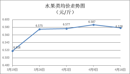 水果類商品價格升降互現(xiàn)。本周所監(jiān)測的6種水果商品價格波動情況為3漲2跌1平,綜合零售均價為6.578元/斤,環(huán)比下降0.13%。其中蘋果、香蕉、葡萄零售均價分別為每斤7.22元、3.24元、13.00元,環(huán)比分別上漲0.84%、持平、下降0.31%。