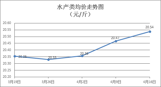 水產(chǎn)類商品價格總體微升。本周所監(jiān)測的10種水產(chǎn)商品價格波動情況為6漲4跌,綜合均價為20.54元/斤,環(huán)比上漲0.34%。其中:草魚、鯽魚、鳙魚、羅非魚、基圍蝦零售均價分別為每斤11.06元、13.79元、10.20元、8.44元、38.73元,環(huán)比分別上漲1.10%、下降0.43%、上漲0.20%、下降0.59%、下降0.18%。