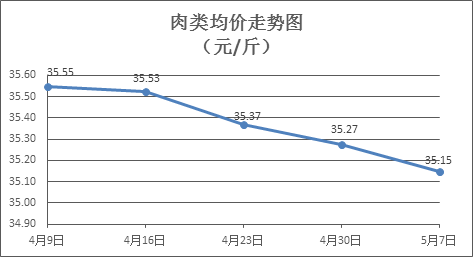 肉類商品價格小幅下調。本周所監(jiān)測的8種肉類商品價格波動情況為1漲6跌1平,綜合零售均價為35.15元/斤,環(huán)比下降0.35%。其中:排骨、精瘦肉、有皮上肉、牛肉、帶骨羊肉零售均價分別為每斤29.21元、19.18元、14.49元、54.62元、46.33元,環(huán)比分別下降1.42%、下降1.44%、下降0.55%、下降0.05%、下降0.19%。