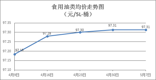 食用油類商品價格微幅調整。本周所監(jiān)測的9種食用油(5L裝)商品價格波動情況為3漲2跌4平,綜合零售均價為97.31元/桶,環(huán)比持平。其中:金龍魚花生油、玉米油零售均價分別為每桶106.43元、76.21元,環(huán)比分別下降0.06%、上漲0.12%。
