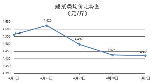 據本市21家農貿市場監(jiān)測數(shù)據顯示,上周(4月30日至5月7日,下同)市場上各類“菜籃子”商品供應充足,所監(jiān)測的7大類“菜籃子”商品價格1漲4跌2平。其中:糧油類商品價格基本平穩(wěn),肉禽蛋類、水果類商品價格略有下降,蔬菜類、水產類商品價格升降互現(xiàn)。隨著“五一”節(jié)后市場消費將有所降溫,加之當前雨水天氣較多,預計近期市場上肉禽類、水果類商品價格將有所回落,蔬菜、水產類商品價格或有小幅上升預期。