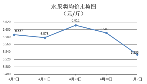水果類商品價格穩(wěn)中有降。本周所監(jiān)測的6種水果商品價格波動情況為1漲4跌1平,綜合零售均價為6.533元/斤,環(huán)比下降0.88%。其中蘋果、香蕉、葡萄零售均價分別為每斤7.30元、3.20元、13.17元,環(huán)比分別上漲0.14%、下降0.62%、下降1.35%。