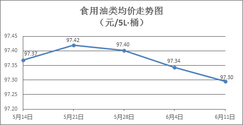 食用油類商品價(jià)格穩(wěn)中略降。上周所監(jiān)測的9種食用油(5L裝)商品價(jià)格波動情況為1漲5跌3平,綜合零售均價(jià)為97.30元/桶,環(huán)比下降0.05%。其中:花生油、調(diào)和油零售均價(jià)分別為每桶115.75元、63.60元,環(huán)比分別下降0.07%、下降0.19%。