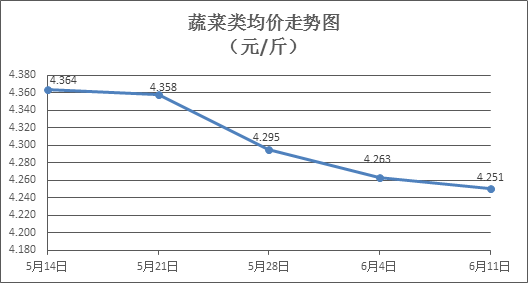 蔬菜類商品價(jià)格升降互現(xiàn)。上周所監(jiān)測的32 種蔬菜商品價(jià)格波動情況為14漲17跌1平,綜合零售均價(jià)為4.251元/斤,環(huán)比下降0.30%。其中:漲幅居前的品種包括蓮藕、椰菜、西芹,零售均價(jià)分別為每斤4.69元、2.52元、4.89元,環(huán)比分別上漲3.30%、3.28%、3.16%;跌幅居前的品種包括水空心菜、奶白菜、苦瓜,零售均價(jià)分別為每斤3.36元、3.99元、4.31元,環(huán)比分別下降6.15%、3.16%、2.93%。