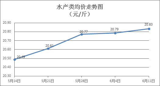 水產(chǎn)類商品價(jià)格窄幅盤整。上周所監(jiān)測的10種水產(chǎn)商品價(jià)格波動情況為6漲3跌1平,綜合均價(jià)為20.83元/斤,環(huán)比上漲0. 24%。其中:草魚、鰱魚、鳙魚、羅非魚、基圍蝦零售均價(jià)分別為每斤10.99元、9.80元、10.16元、8.39元、39.26元,環(huán)比分別下降0.45%、上漲1.03%、上漲0.89%、下降0.59%、下降0.28%。