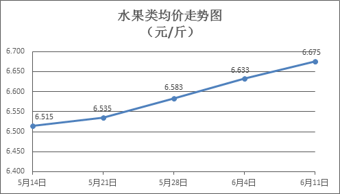 水果類商品價(jià)格總體略漲。上周所監(jiān)測的6種水果商品價(jià)格波動情況為4漲2跌,綜合零售均價(jià)為6.675元/斤,環(huán)比上漲0.63%。其中蘋果、香蕉、葡萄零售均價(jià)分別為每斤7.38元、3.24元、13.63元,環(huán)比分別下降0.54%、上漲0.93%、上漲1.49%。