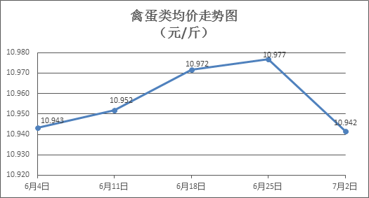 禽蛋類(lèi)商品價(jià)格有所回落。上周所監(jiān)測(cè)的6種禽蛋類(lèi)商品價(jià)格波動(dòng)情況為5跌1平,綜合零售均價(jià)為10.942元/斤,環(huán)比下降0.32%。其中:白條雞、白條鴨零售均價(jià)分別為每斤19.83元、15.56元,環(huán)比分別下降0.05%、下降0.83%;白殼雞蛋、鴨蛋零售均價(jià)分別為每斤6.70元、7.90元,環(huán)比分別下降0.30%、持平。
