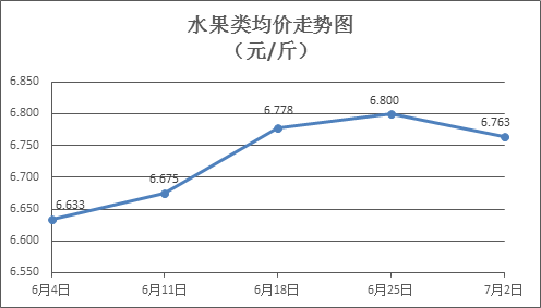 水果類(lèi)商品價(jià)格小幅波動(dòng)。上周所監(jiān)測(cè)的6種水果商品價(jià)格波動(dòng)情況為2漲3跌1平,綜合零售均價(jià)為6.763元/斤,環(huán)比下降0.54%。其中蘋(píng)果、香蕉、梨零售均價(jià)分別為每斤7.44元、3.21元、6.43元,環(huán)比分別持平、下降0.62%、上漲1.42%。
