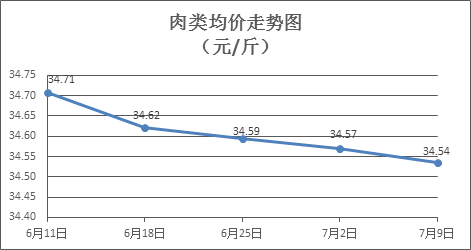 肉類商品價格弱勢盤整。上周所監(jiān)測的8種肉類商品價格波動情況為3漲4跌1平,綜合零售均價為34.54元/斤,環(huán)比下降0.10%。其中:排骨、精瘦肉、有皮上肉、牛肉、帶骨羊肉零售均價分別為每斤28.65元、18.24元、13.94元、54.41元、45.27元,環(huán)比分別持平、上漲0.22%、下降0.71%、下降0.27%、下降0.07%。